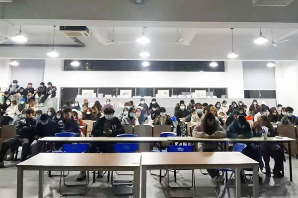 何雨欣与其他班助给新生开会。