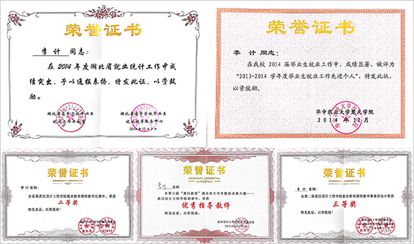 “工欲善其事,必先利其器”,从事就业工作11年来,李计勤奋好学,主动参加就业派遣方案编制、TTT、GCDF、就业创业指导师、心理咨询师等各类就业创业培训,先后获得全球职业生涯规划师、高校生涯规划指导师、高校生涯团辅导师、湖北省大学生创业教育教师、高校就业指导人员、心理咨询师二级等资格证书。
