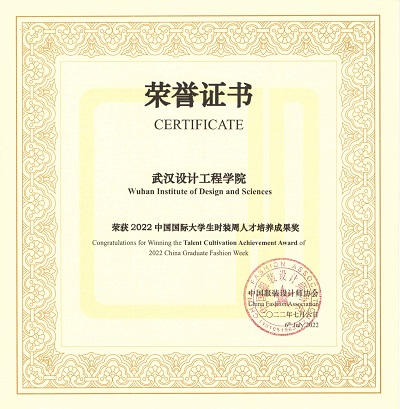 “2022中国国际大学生时装周人才培养成果奖”获奖证书。