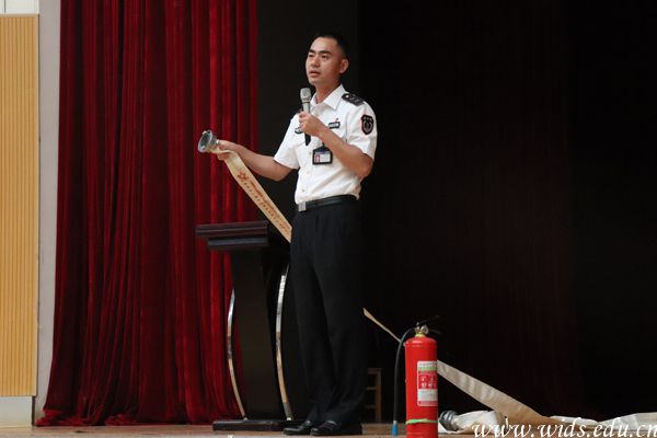 讲座上,谢小秋对消防安全方面知识进行了全面生动的讲解,他重点围绕生活中的安全隐患、灭火方法、如何安全逃生等方面来展开了详细讲述,并现场演示了灭火器、消防栓和手电筒等消防工具的正确用方法。谢小秋结合充电器、烟头等生活中常见物品引发火灾的真实案例,为同学们分析在生活中有哪些容易被忽视的细节会引发火灾。
