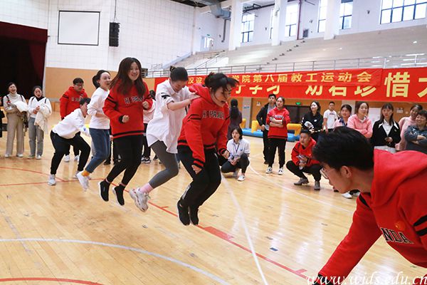 本届教职工趣味运动会由校工会主办,公共基础课部体育教研室承办,共有12支教职工队伍参加了比赛。比赛共设有翻山越岭、车轮滚滚、珠行万里、集体跳绳四个运动项目,且均为团体赛,全校200多名教职工报名参加了比赛。