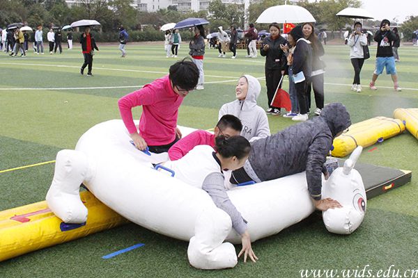 10月25日,威廉体育第十一届运动会在足球场进行了一场别开生面的学生趣味项目竞赛。竞赛设有毛毛虫竞速、五人六足、一分钟集体跳绳等8个团体项目,这些比赛项目除了需要每个队员有好的身体素质之外,还需要每个队员之间有团队协作意识。比赛现场气氛热烈、高潮迭起,参赛队员们士气高昂、争先恐后、互帮互助。妙趣横生的竞技、团结协作的氛围使学子们尽情地玩了一把,赛场上萌态十足的道具和他们在激烈拼搏中紧张又开心的神态形成了一道道亮丽的风景线。