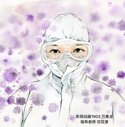设计说明:身穿防护服的战士,无数个日夜与病毒的奋战,防护面罩之下疲惫但坚毅的双眼,面对危险和使命,你们毫不犹豫冲在前线,致敬可爱的白衣天使,期盼你们平安归来!明天你好 ,明天会更好!