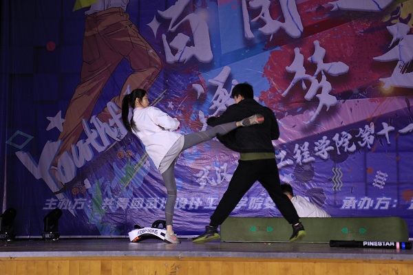 编舞社甩手舞《More》凭借着优美性感的舞蹈动作和豪放台风燃爆全场,将晚会气氛推向高潮。搏击社带来的情景剧《搏击俱乐部》活力满满,尽显大学生青春风采。动漫社的走秀表演,jk、Lolit、Cosplay等各种服装造型依次登场,让观众连连称赞。晚会在街舞社精彩的《crew tiger》舞蹈中圆满落幕。