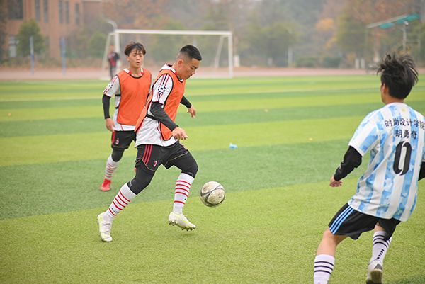 下半场双方球员互换场地,时尚设计学院球员们拿出输球不输阵的气势,顶住重重压力,奋力拼到最后一刻。队员们采用严防反击战术,与对方形成对峙,压制进攻气势。同时,抓住对手后场空虚时机,利用后卫压上助攻,通过直塞身后、长传转移空档等精彩配合,化被动防守为主动进攻,提升了队伍的士气。