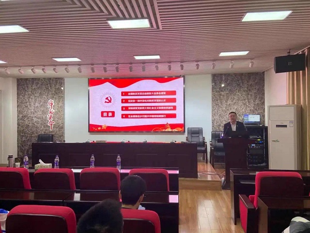报告会上,宋刘斌老师以“把驻村积累的精神财富化作奋发前行的动力”为题,分享了自己在全国脱贫攻坚表彰大会上的感受以及在枧甘村扶贫的经历。从成立党员志愿服务队,修建贵王桥和5组通护路,到投入资金建设易地扶贫搬迁安置点、动员全校师生“带货”帮售农产品……鲜活的案例、生动的图片让全体师生仿佛亲历了山村的蜕变,也深切领会了打赢脱贫攻坚战的重大意义,更对党的政策、国家制度的优越先进性有了深刻的理解和认识。最后,宋老师寄语全体青年:“希望同学们能够在艰苦奋斗中坚定理想信念,在认真学习中练就过硬本领,在为民服务中发扬奉献精神,把科研论文写在祖国的大地上。”