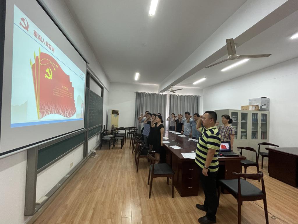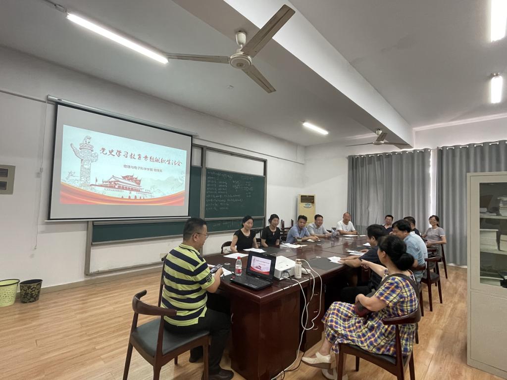 根据学校和学院党委的统一安排,2021年7月13日下午,应用物理系党支部在理科楼B513召开了党史学习教育专题组织生活会,会议由支部书记范志强主持,全体党员参加了会议。会议第一项内容是由支部书记范志强带领全体支部党员重温入党誓词,全体党员举起右拳在党旗下庄严的宣读入党誓词。会议第二项内容是党支部书记范志强向全体党员做了述职报告,汇报了2021年上半年的党务日常管理工作内容和支部围绕“学史明理”“学史增信”“学史崇德”“学史力行”四次专题开展的学习情况和实践情况。会议第三项内容是邀请教学副院长刘新海讲专题党课,以《深入学习贯彻习近平总书记在庆祝中国共产党成立100周年大会上重要讲话》为主旨,要切实把思想和行动统一到习近平总书记重要讲话精神上来,在支部兴起学习宣传贯彻热潮,激励引导全体支部党员牢记初心使命,坚定理想信念,践行党的宗旨,为全面建设社会主义现代化国家、实现中华民族伟大复兴贡献自己最大的力量。