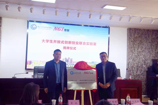 会上,双方代表签署了校企产学研合作协议书,并共同为大学生开放式创新创业联合实验室进行了揭牌,湖南恩智测控技术有限公司现场为共建实验室捐赠第一批价值6万余元的仪器设备。随后,湛雪辉副院长代表学院为企业授予了校外实习基地的牌匾,并为聘任的两位企业导师湖南恩智测控技术有限公司总经理吴宏、研发总监杨细芳颁发了聘书。