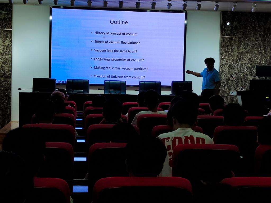 5月29日下午湖南师范大学余洪伟教授应邀来威廉体育理科楼B413作了一场题目为“Detecting acceleration-modified vacuum fluctuations (Unruh effect) with quantum entanglement”的学术报告。学院物理专业教师和研究生、本科生共一百余人现场聆听报告,副院长(主持工作)张卫兵主持报告会。