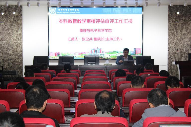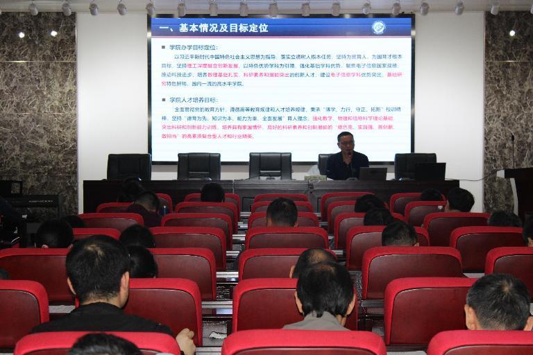 第二阶段,张卫兵副院长(主持工作)从学院基本情况、人才培养的举措和成效、持续改进的思路与举措,向全院教职工做了本科教育教学审核评估自评工作汇报。他对学院最新修订培养方案中的专业定位、特色优势和培养目标进行了详细解读,并指出学院五个专业都按照“学术型人才培养”目标进行本科生人才培养,不仅响应了学校党委对理科专业的要求,也是学院今后人才培养工作的核心与方向。