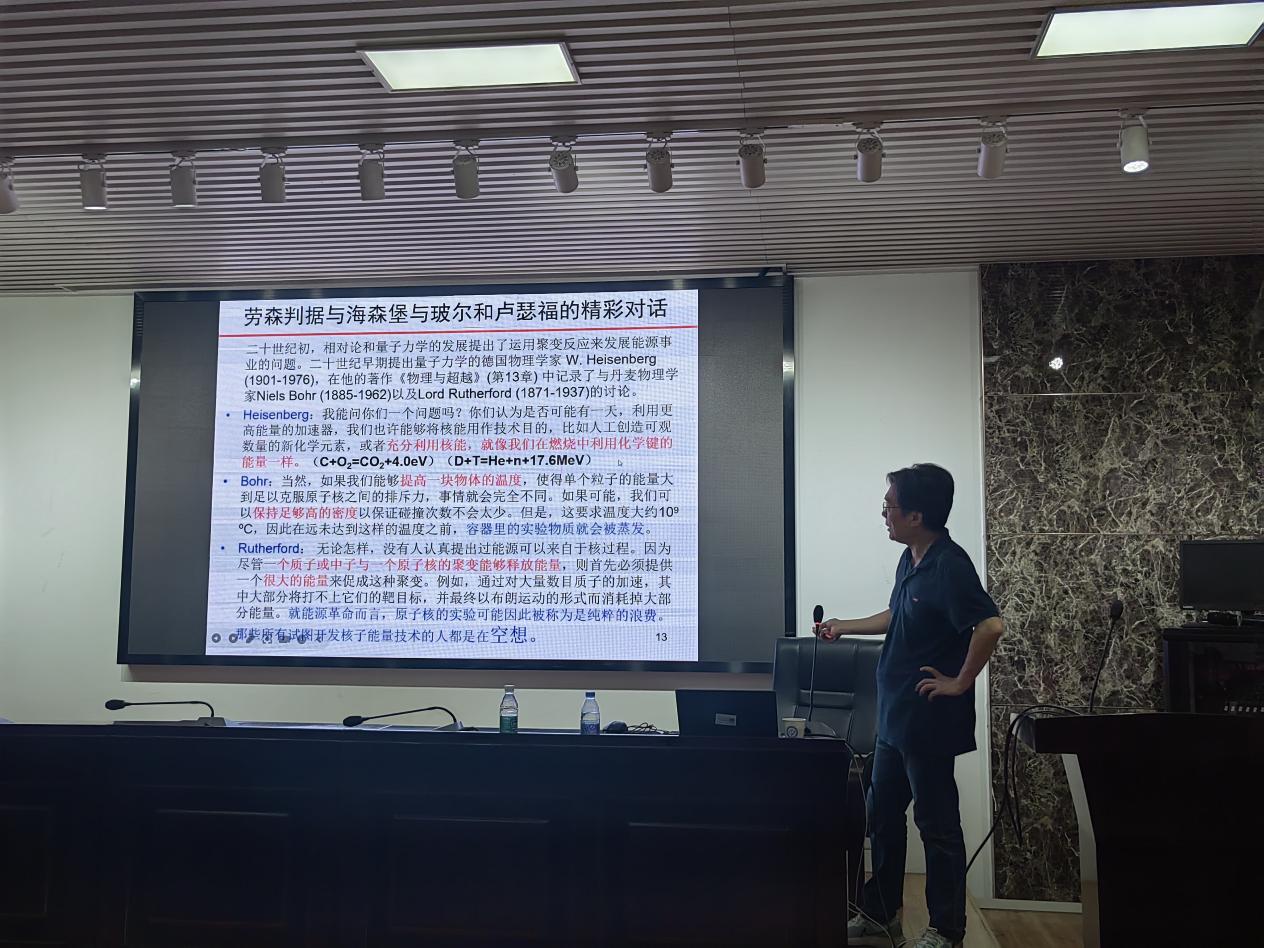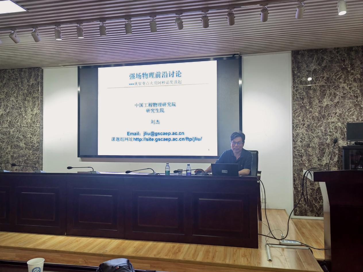 下午,刘杰教授在理科楼B413会议室作了主题为《强场物理前沿讨论——从聚变点火及阿秒诺奖谈起》的学术讲座,讲座由唐立军教授主持,百多名师生参加。刘杰教授首先讲述了近期物理学两大热点事件,即2022年12月 NIF激光聚变点火成功及2023年10月阿秒物理获诺奖,并对上述事件背后涉及的基础科学问题进行梳理及评述。