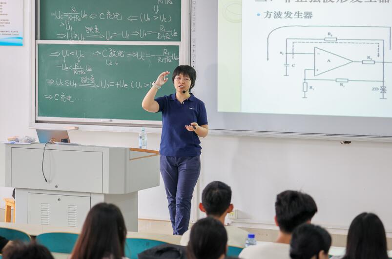 在刘斯看来,教学还必须以国家战略需求为导向。面对半导体产业的“卡脖子”困境与科技变革的浪潮,刘斯主动将产业动态融入电子信息专业教学,通过分析芯片制造瓶颈、对比国内外技术差距等,激发学生的爱国情、报国志、强国行,真正在教学中同步育人。
