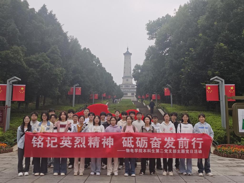 为深入学习伟大抗战精神,筑牢理想信念根基,9月27日上午,物电学院第二学生党支部全体党员前往湖南烈士公园,开展“以伟大抗战精神铸魂育人,以教育家精神强师筑梦”主题党日活动。