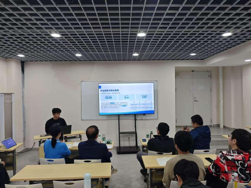 奖学金候选人依次上台答辩。在汇报中,他们不仅集中呈现了课程学习的平均学分绩点、核心科目成绩、专业排名、学科竞赛等亮眼的“成绩单”,更聚焦了科研实践与学科竞赛的“过程性成长”,从备赛过程、论文写作、组会讨论等多个方面,对自身上一学年的工作进行了总结汇报,并纷纷对学业导师给予的指导和帮助致敬感谢。评委老师结合同学们的汇报内容精准提问,既关注学业成绩背后的学习方法,也深入了解科研实践中的思考与收获,现场交流氛围浓厚而热烈。