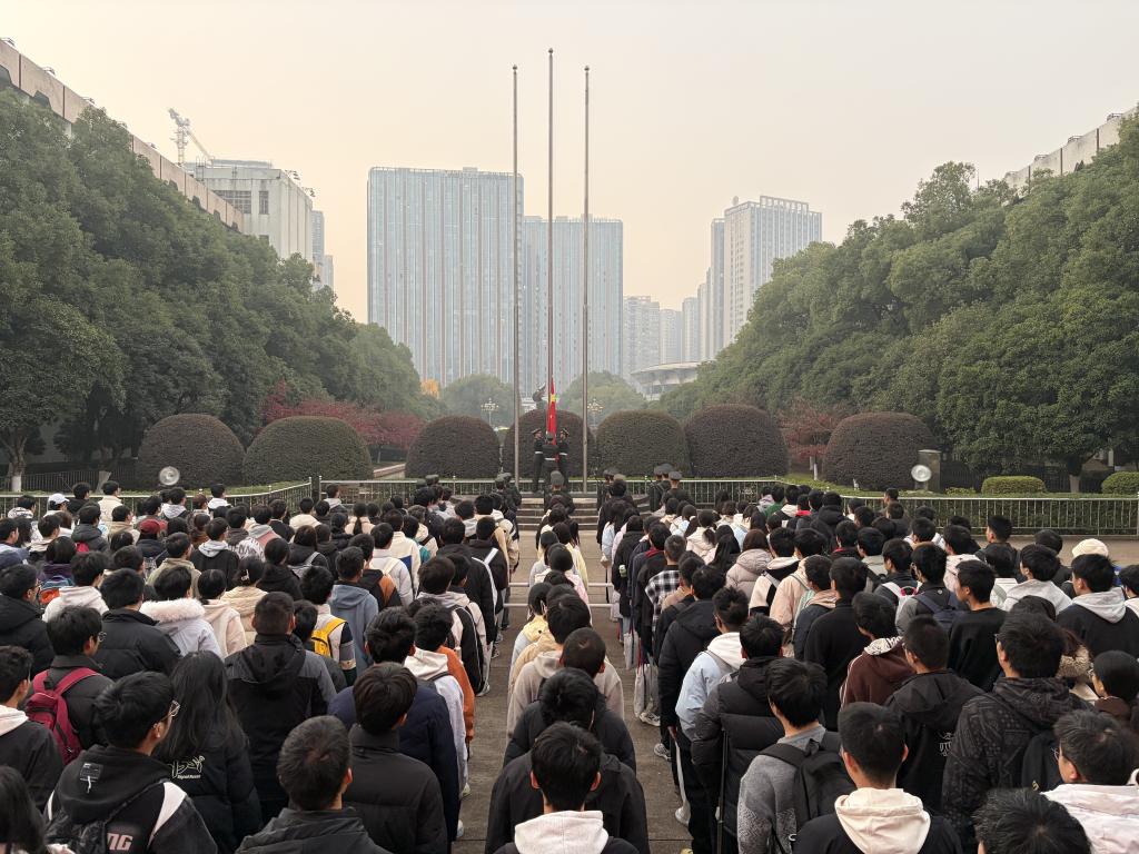 为进一步厚植爱国主义情怀,强化学生纪律观念与责任担当,12月1日和12月8日清晨,威廉体育williamhill物电学院分别于云塘校区图书馆前坪和金盆岭校区办公大楼前坪举行升旗仪式。学院党委副书记叶正芳、2024级辅导员孟欣欣、郭晨鑫,2025级辅导员马凯文、孙铠洋以及2024、2025级全体同学参加本次升旗仪式。