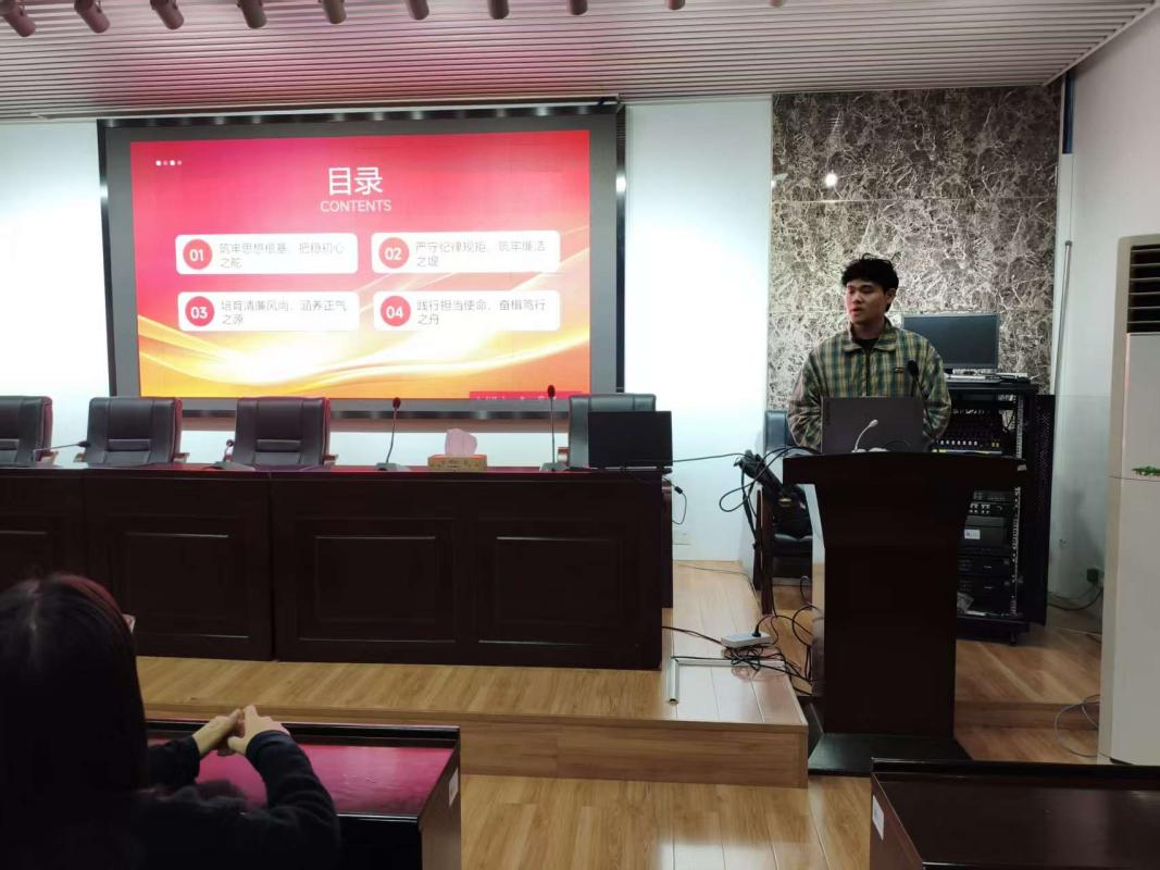 活动伊始,文宇翔同志围绕学习贯彻习近平新时代中国特色社会主义思想、推进全面从严治党、培育清廉风尚核心议题作专题汇报,重点领学《习近平谈治国理政》第五卷关键内容。他结合青年党员成长实际,系统解读中国式现代化的中国特色、本质要求与重大原则,强调青年党员的廉洁修养不仅是个人品德修为,更是践行强国使命的基础。汇报中文宇翔以理论加实践的方式,将政策与校园生活、专业学习相结合,让在场党员对全面从严治党的时代意义有了更真切的体悟。