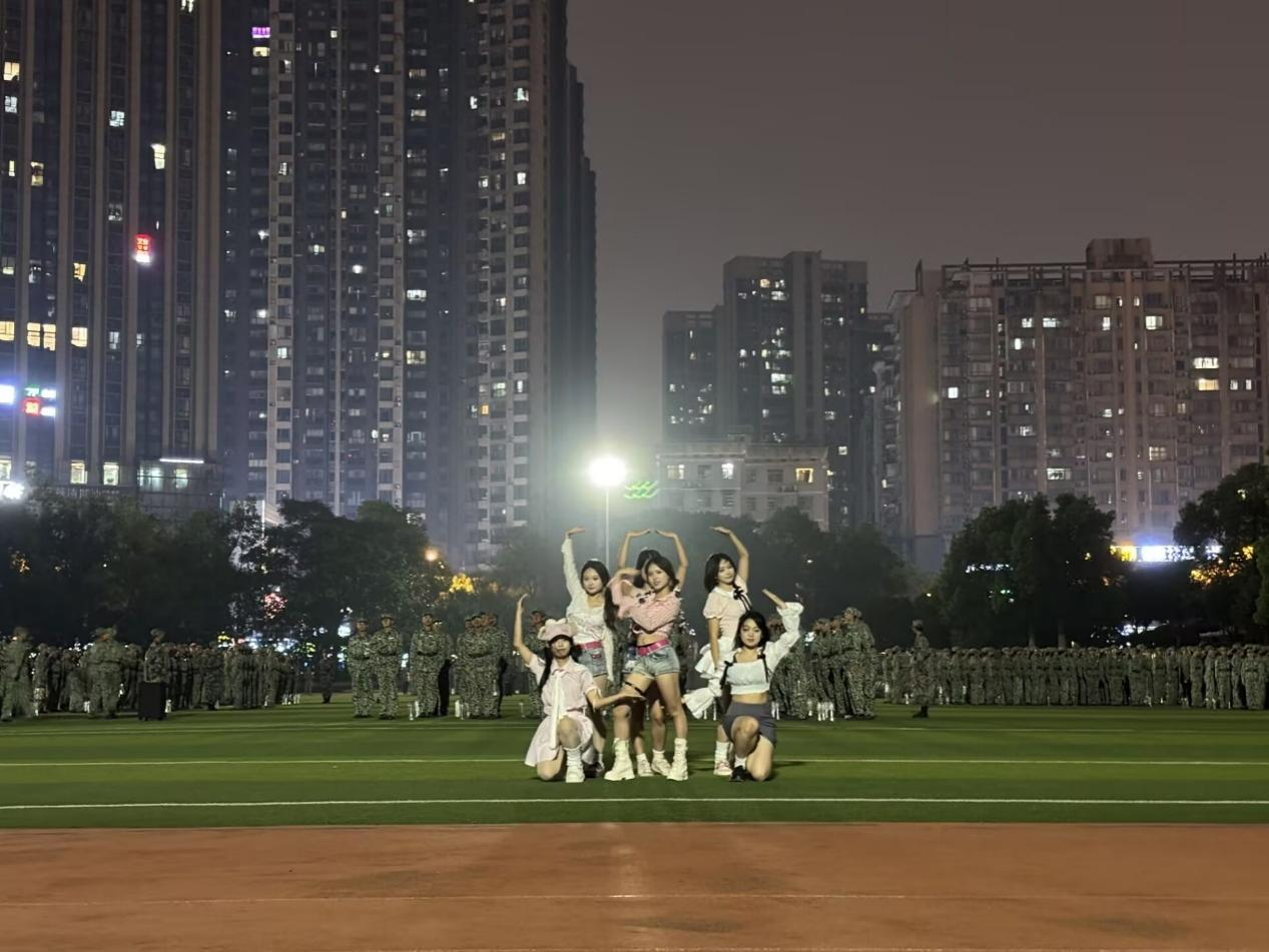 中华武术表演《武动风云》由电子2503班周奕辰精彩呈现,刚劲有力的动作展现出不屈的韧劲,呼应军训中锤炼的意志品质。物电学院声乐队接连献唱《先说谎的人》《爱的回归线》《如果爱忘了》等多首金曲,以歌声串联青春故事,将晚会推向高潮。光电2502班倪嘉、电子2502班周晓仪的舞蹈串烧《Mashup》则以极具爆发力的舞姿引爆欢呼,展现青春的热血与张扬。