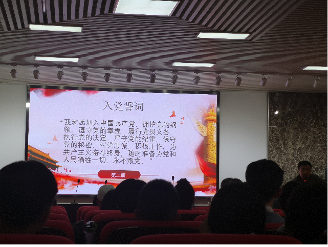 首先全体起立,奏唱国歌,随后王中兴老师带领学员们重温了入党誓词,同学们在党旗下庄严宣誓。接着王中兴老师宣读了培训注意事项及管理纪律。