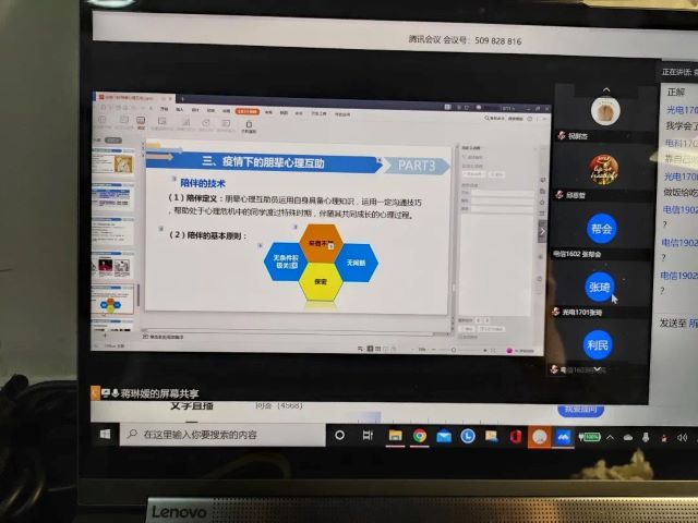 此次朋辈培训虽然是线上,但是同学们都认真参与讨论,提升了朋辈在疫情期间的助人技巧。