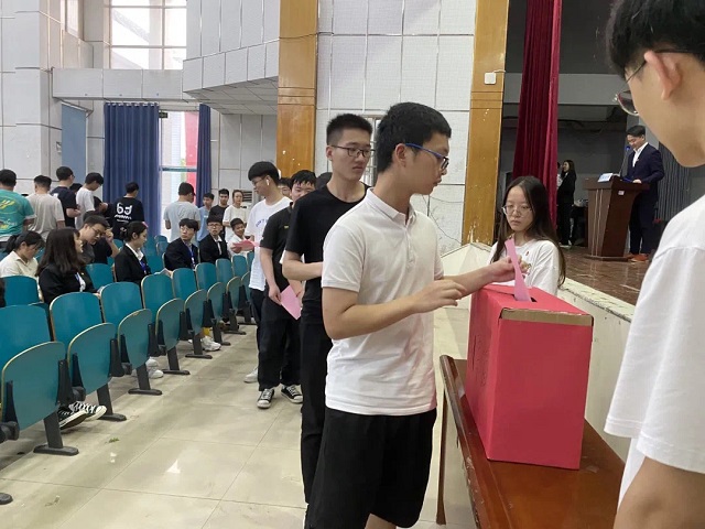 随后,由研究生代表唐家雯宣读大会选举办法,秉持着公平、公正、公开的原则,各代表对所有候选人进行投票并提交选票。大会听取了《物理与电子科学学院第十二届团委工作报告》《物理与电子科学学院第十二届学生会工作报告》《物理与电子科学学院第十三次团员、学生代表大会提案工作报告》。报告高度总结了团委学生会过去一年的工作成绩,概括了学生工作取得的工作经验,明确提出未来学生会的发展规划与奋斗目标,掌握时代需求,砥砺前行。