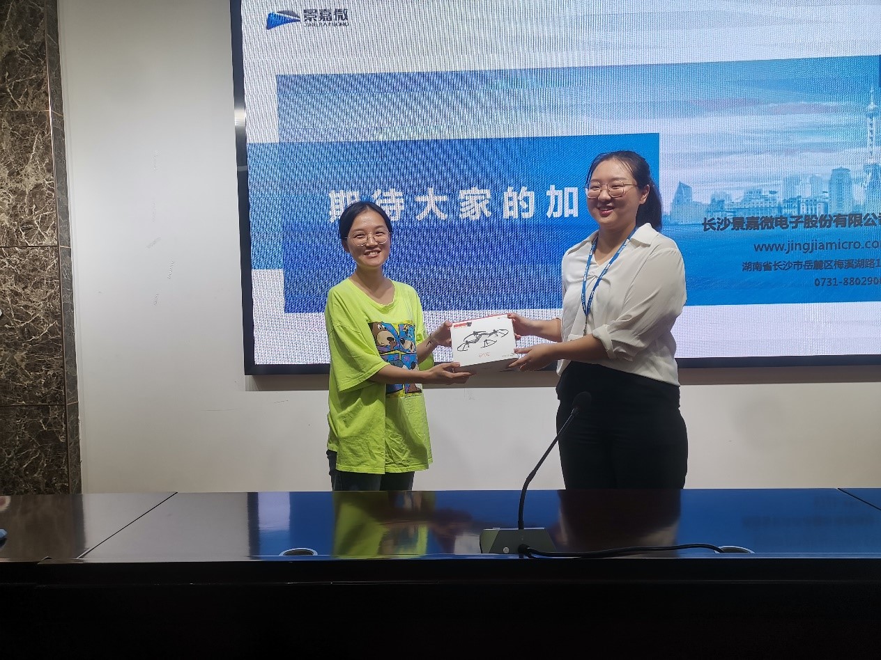 随后,由景嘉微的HR为同学们详细介绍了景嘉微公司当前情况、发展平台及薪资福利、岗位需求、应聘方式及面试指南。从公司附近的生态环境到内部的科研条件,全方位为同学展示景嘉微公司基本情况。并且展示了公司荣誉,产品及专利,其中包括明星产品——GPU-JM5400及GPU-JM7200。HR重点提及景嘉微的企业优势、企业文化、团队氛围、多轨制的发展通道、薪资待遇员工福利,表示景嘉微欢迎有实力有素质的青年人的加入。