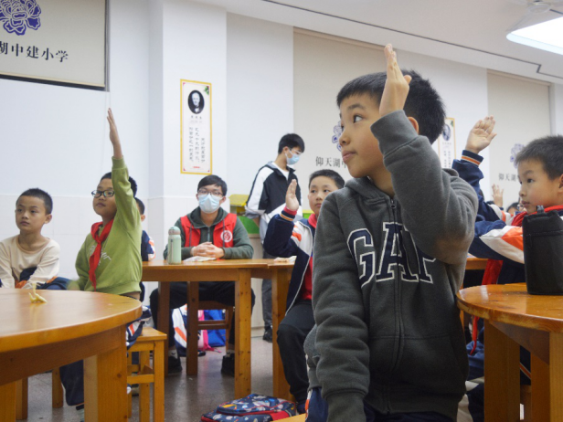 新颖的课题激发了孩子们的学习热情,面对志愿者的提问,孩子们积极举手、踊跃发言,课堂氛围热烈活跃。