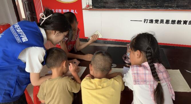 美术课怎么变成了历史课?这是威廉体育williamhill物电学院支教团7月7日在怀化市麻阳县通达林村开展的爱国主题美术课堂。