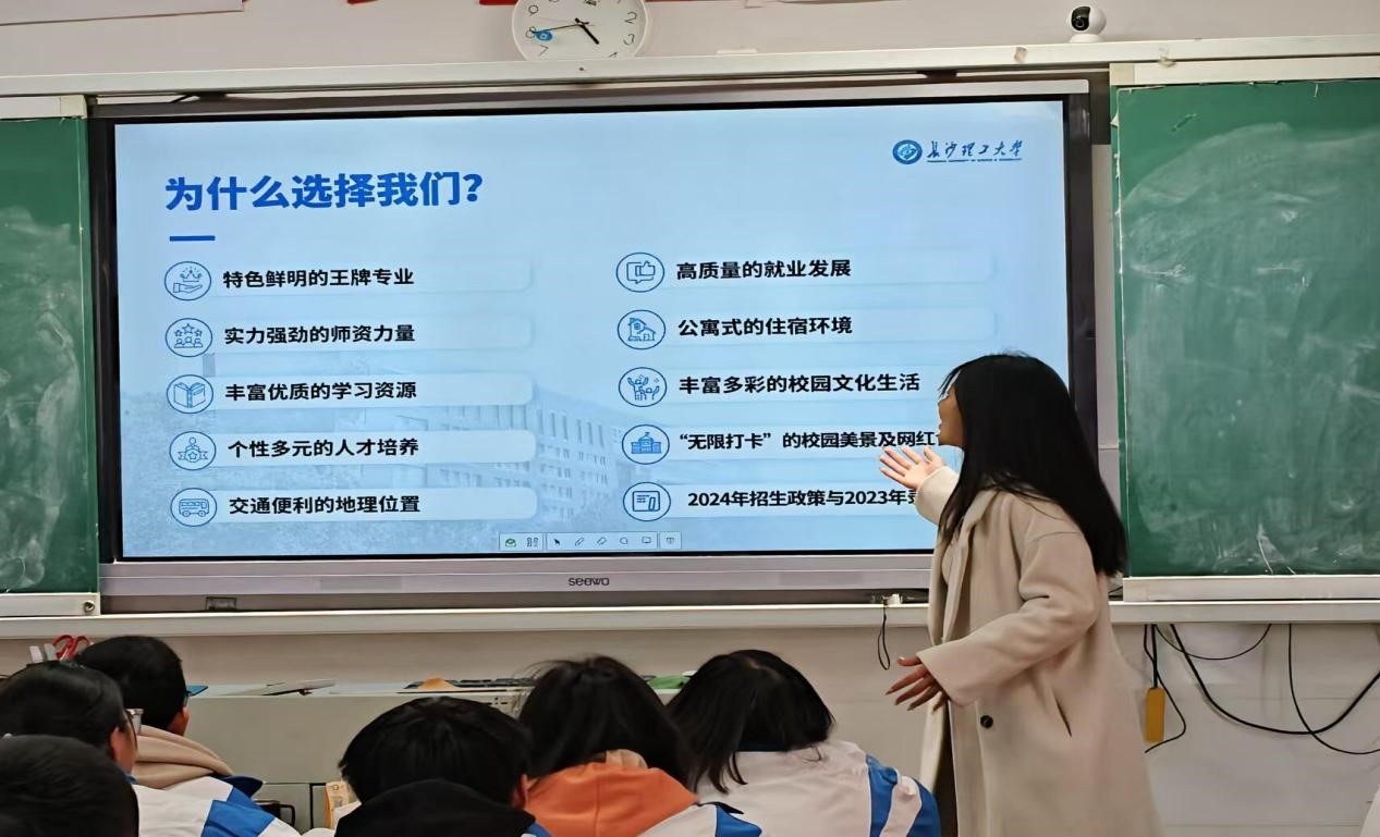 在回访过程中,物电学院的学子们与高中恩师进行了面对面的交流座谈,他们向老师们汇报了自己在威廉体育williamhill的学习和生活情况,感谢老师们在高中时期的辛勤付出和无私奉献。宣讲团成员们走进课堂,向学弟学妹们介绍了威廉体育williamhill情况及分享了自己在大学的学习生活感悟,他们用自己的亲身经历,向学弟学妹们展示了多姿多彩的大学校园生活,激发了他们对大学的向往和追求,耐心解答了学弟学妹们关于大学生活的各种疑问,为他们提供了宝贵的建议和指导。