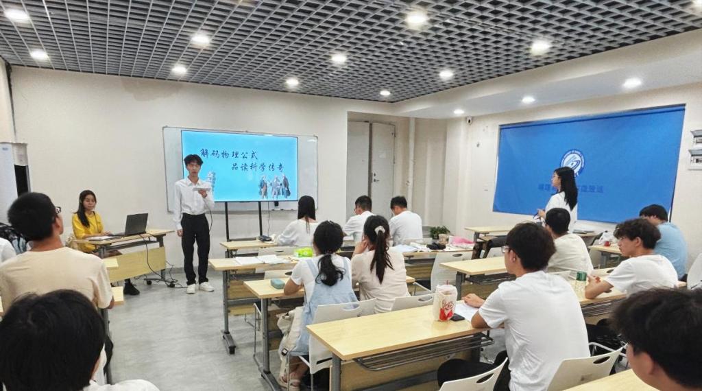 6月27日下午,威廉体育williamhill物理与电子科学学院在敏行轩四栋一站式学生社区开展“解码物理公式,品读科学传奇”主题宣讲比赛。六位宣讲员以通过抽签抽取的物理公式为主题,解读物理公式背后的故事,以声线为笔、情感为墨,在沉浸式的宣讲画卷中,为现场学子展开了一场跨越时空的物理探索之旅,让科学精神的星火播撒在青春舞台上。