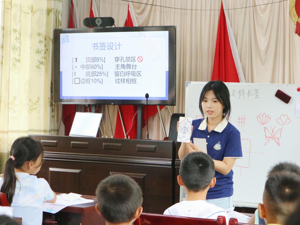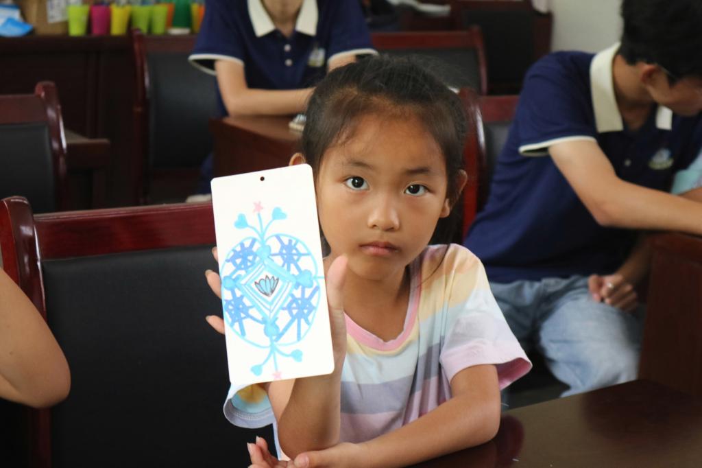 “八角纹真的是‘八方来财’吗?”“蝙蝠涂红会更喜庆吧!”7月18日,张家界市桑植县走马坪白族乡走马坪村支部教室,威廉体育williamhill物理与电子科学学院“小小科学家”团队执笔引导乡村儿童将非遗白族纹样几何纹、花卉纹、动物纹“变”成书签,千年纹样就此跃入童真世界。