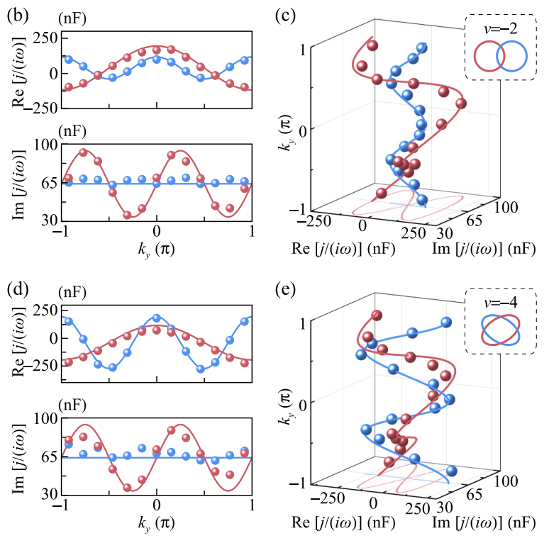 此次研究团队构建了新型二维非厄米电路,该电路模型巧妙结合了Su-Schrieffer-Heeger(SSH)链和Hatano-Nelson模型(图1)。SSH链赋予体系厄米拓扑及边界态,Hatano-Nelson模型则为边界态引入非厄米的缠绕和编织特性。利用电路平台便于引入非厄米性的优势,通过测量电路导纳,成功观测到拓扑边界态的非厄米缠绕和编织现象。非厄米缠绕使得拓扑边界态产生双向趋肤,即杂化双向趋肤效应。能带的编织可以呈现出类似于Hopf link和Solomon link的构型,它们具有不同的编织度ν(图2)。该研究工作将加深了人们对厄米与非厄米拓扑相互作用的理解,同时为操控角态提供了新机制,有望在未来的电路设计、信号处理等领域得到广泛应用。