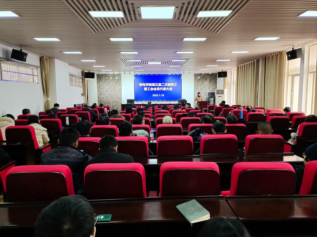 1月18日下午,物电学院在理科楼B413会议室召开了第五届二次教职工暨工会会员代表大会。会议是经校工会批准以全体教职工大会的形式完成教代会的职责。学院全体教师参加了大会,会议由院党委副书记宋国宁主持。
