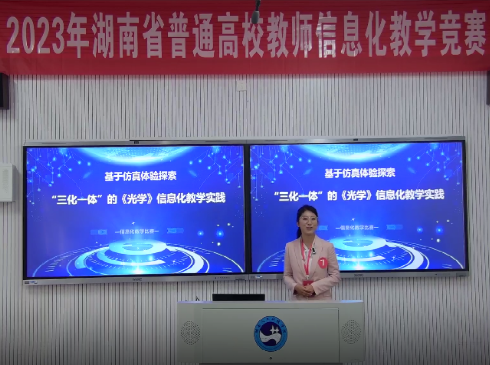 11月12日,由湖南省教育厅主办的2023年湖南省高校教师信息化教学竞赛决赛在湖南人文科技学院落下帷幕。经过激烈角逐,物电学院物理系李茜老师以“基于仿真体验探索“三化一体”的《光学》信息化教学实践”为主题,获得理工组一等奖!