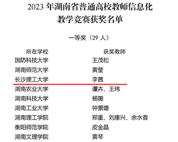 喜讯!我院李茜老师获湖南省普通高校教师信息化教学竞赛一等奖