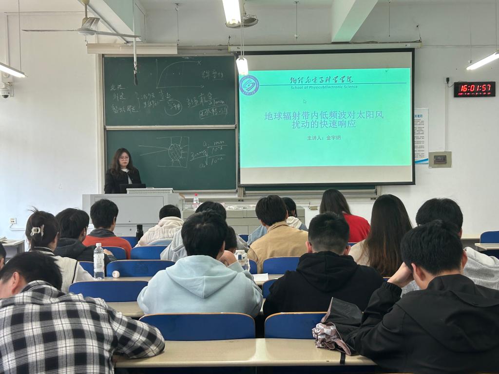 为提高学生对地球辐射带内低频波了解426下午16:00,物理与电子科学学院在云塘校区云工一B209举办“地球辐射带内低频波对太阳风扰动的快速响应”通识教育讲座,本次讲座由金宇玥博士主讲。