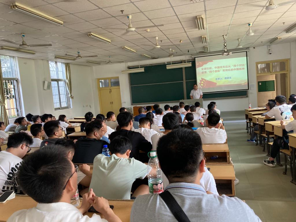 课上,唐书记做了题为“全球抗疫,中国青年应从‘四个对比’读懂‘四个自信’和背后的中国精神”的专题报告。他以本次疫情防控为切入点,结合中国抗疫实际和国际抗疫形势,通过生动的案例分析、详实的数据比较,从“方向抉择、执政方略、治理模式、精神塑造”四个方面进行比对,深刻剖析了疫情防控中彰显的“四个自信”。