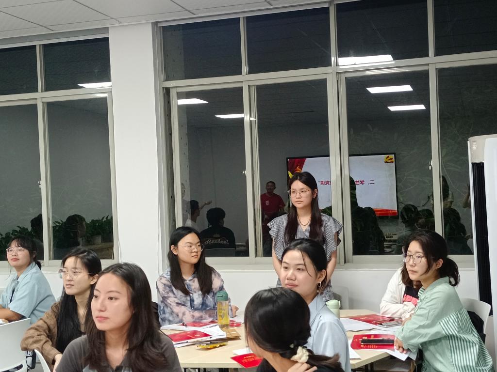 会上,各支部对深入开展学习习近平新时代中国特色社会主义思想开展党员“微党课”;组织观看了《中国共产党党徽党旗条例》的解读视频;关于严格党员发展程序和规范党员档案材料组织了交流研讨。汉语言本科生党支部何晨曦同志指出,我们要深刻认识党徽党旗的深刻内涵和相关要求,自觉规范使用党徽党旗及其图案,保证党徽党旗使用的统一性、规范性和严肃性。在党的旗帜下奋勇前进,履行好新时代党员的责任和使命,不忘初心、牢记使命,坚定理想信念,在党的旗帜下奋勇前进,为党旗添彩,为党徽增辉。新闻学本科生党支部李祉陈同志指出,在发展党员工作中要严格按照《中国共产党章程》和《中国共产党发展党员工作细则》规定的要求,始终坚持把政治标准放在首位,坚持成熟一个发展一个。同时要坚持推动党员档案管理工作规范化,确保新发展党员各个阶段档案材料齐全。