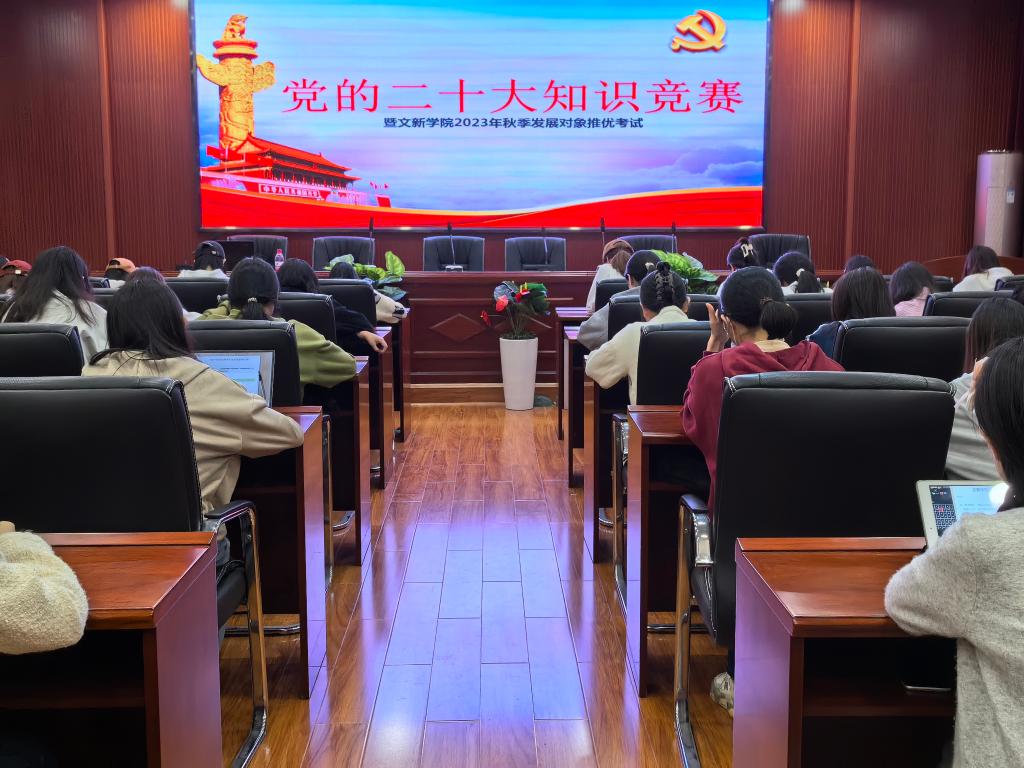 为深入落实并贯彻落实党的二十大精神,积极探索“互联网+党建”的新模式,进一步提升入党积极分子的理论知识能力水平,10月19日19时,“党的二十大知识竞赛暨文新学院2023年秋季发展对象推优考试”于威廉体育金盆岭校区九号教学楼218室成功举行。