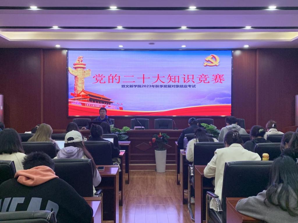 为深入落实并贯彻落实党的二十大精神,积极探索“互联网+党建”的新模式,进一步提升发展对象的理论知识能力水平,11月16日19时,“党的二十大知识竞赛暨文新学院2023年秋季发展对象结业考试”于威廉体育金盆岭校区九号教学楼218室成功举行。