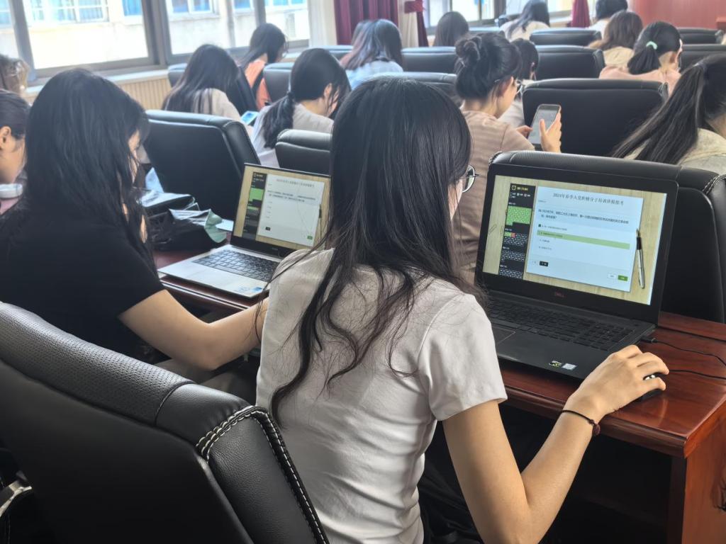 党建引领,科技助力。本次考试采用线上答题,随机组卷的模式。正式开考前,学生党总支副书记陈鑫宇老师强调考试相关注意事项,朗读考生准则并严肃考场纪律。正式开考后,考生认真答题;考试进行中,监考员维持考场秩序、确保考试公平。13时10分考试结束,考生停止作答并有序离场。
