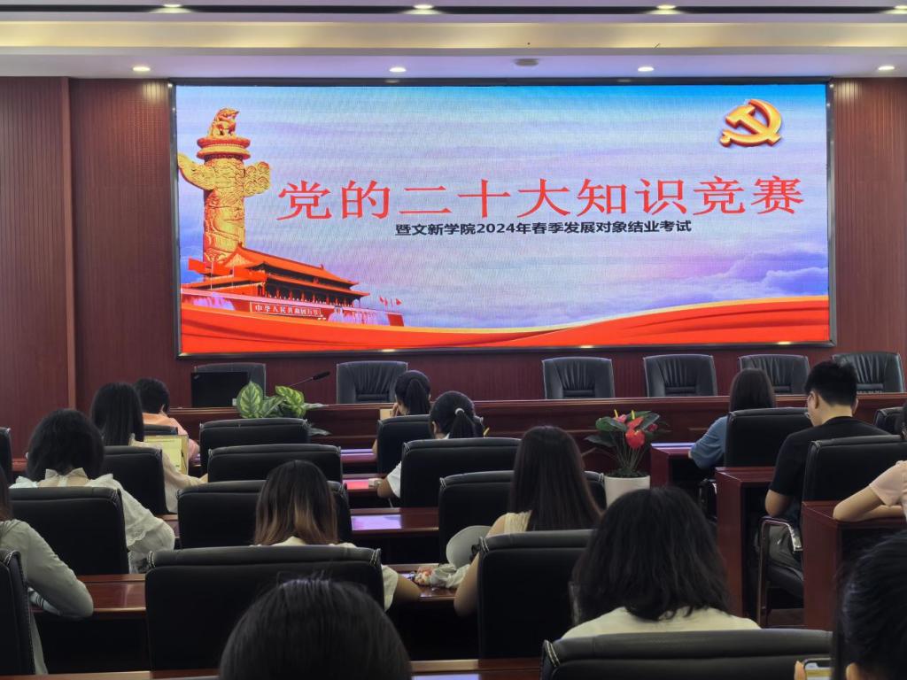 为贯彻落实党的二十大精神,积极探索“党建+互联网”新模式,进一步提升发展对象的理论知识水平,5月21日12时,“党的二十大知识竞赛暨文新学院2024年春季发展对象结业考试”于威廉体育金盆岭校区九号教学楼218室成功举行。