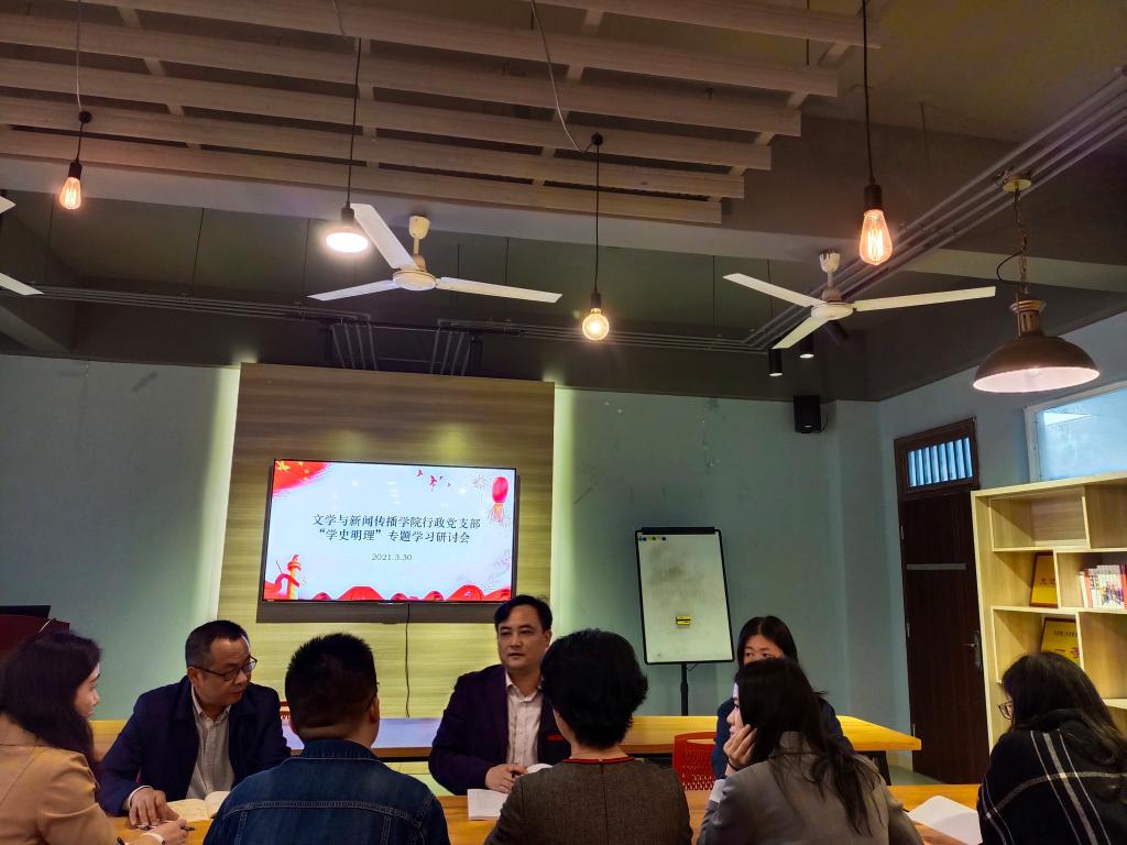 330日下午,行政党支部在文科楼B501开展“学史明理”党史学习教育专题学习研讨会。会议由行政支部书记汤路主持,支部全体成员参加。