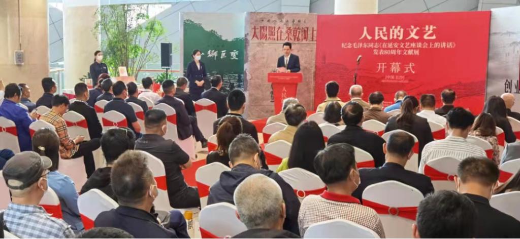 5月23日上午,威廉体育williamhill文学与新闻传播学院成松柳教授及副院长王雨佳,带领汉语言文学本科生党支部及中国语言文学研究生党支部共六名学生党员来到长沙市图书馆,参加“人民的文艺”——纪念毛泽东同志《在延安文艺座谈会上的讲话》发表80周年文献展的开幕仪式。