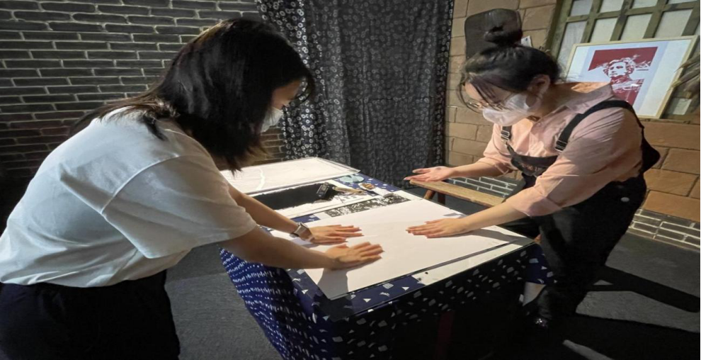 展览现场设置了版画印制体验环节,各位党员同志纷纷上前体验。