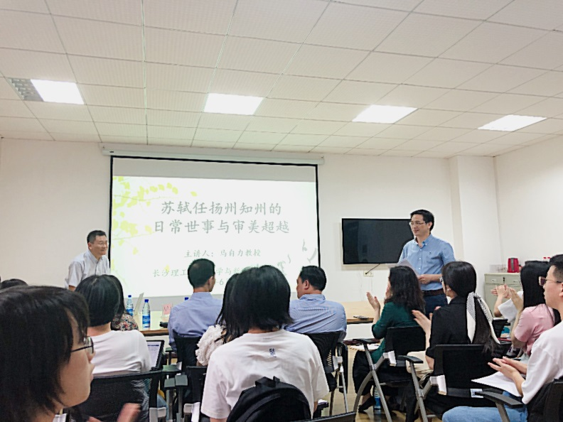 2021年6月4日下午,应威廉体育williamhill文学与新闻传播学院邀请,首都师范大学文学院院长马自力教授在金盆岭校区七号教学楼作了题为《苏轼任扬州知州的日常世事与审美超越》的云影讲坛讲座,此次讲座由郑劭荣教授主持。