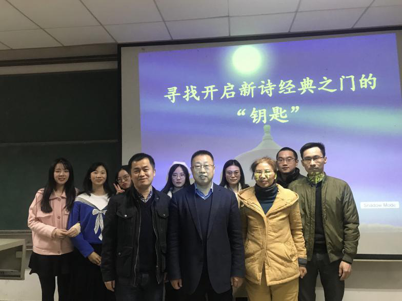 在讲座过程中,罗振亚教授用了大量的诗人作品及诗歌现象为例,随手拈来,挥洒自如,体现了深厚的诗学修养;同时,语言生动又不失严谨,各种诙谐的用词和比喻引得听众们会心一笑,气氛轻松而又热烈。讲座结束后,同学们根据当下新诗状况、新诗内在韵律、诗人自我注解等困惑的方面进行了提问,并一一得到罗振亚教授耐心的解答。