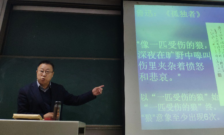 紧接着,针对“寻找开启新诗经典之门的‘钥匙’”这一主题,罗振亚教授从三个方面进行了阐述:首先提出经典确立需要历史主义态度和立场,在这里,罗教授幽默地和大家讨论了《人生》中的高加林是否应该抛弃刘巧珍的问题;其次,经典评判更应以审美维度出发,一方面要破译新诗隐显适度的意象密码,一方面要品味新诗体现情绪律动的自由化语言,同时还应捕捉诗情智化的倾向;最后,注重多向拓展的研究方法,贴近经典文本实质,在这方面,罗振亚教授讲述了引出比较法、整体阅读与细读的统一、进行创造性的“悟”读三个层面的方法。