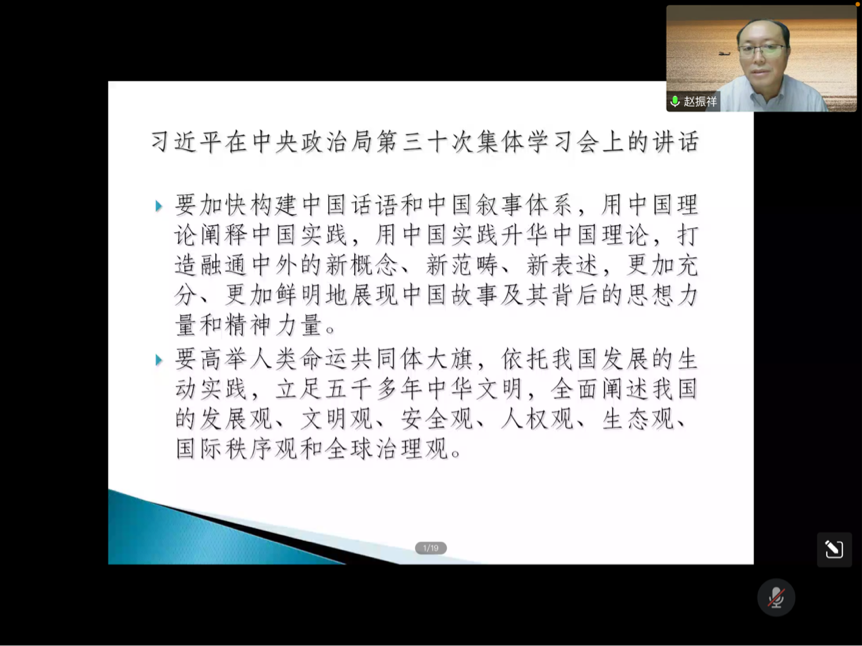 最后,刘建新教授做了简要发言。他总结道,赵振祥教授以丰富的史料、创见性的观点、深刻的洞察力,溯源历史脉络,准确解释现象,并对赵振祥教授深刻且生动的讲授表示由衷感谢!