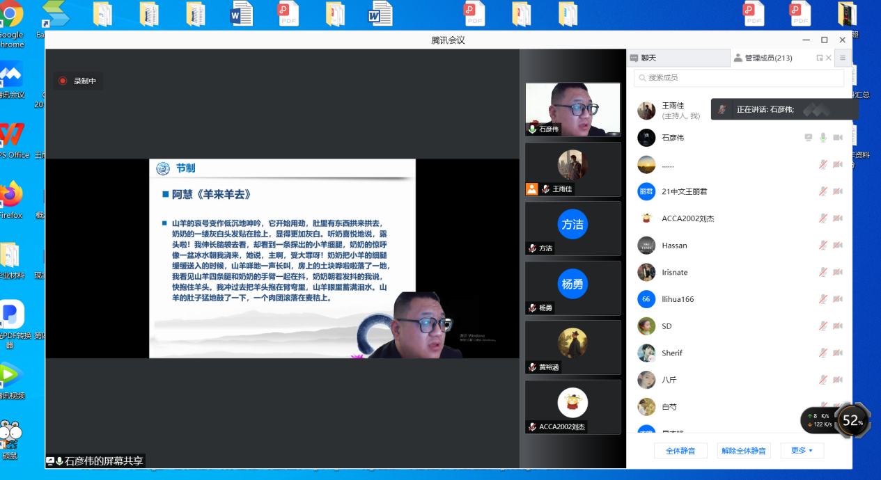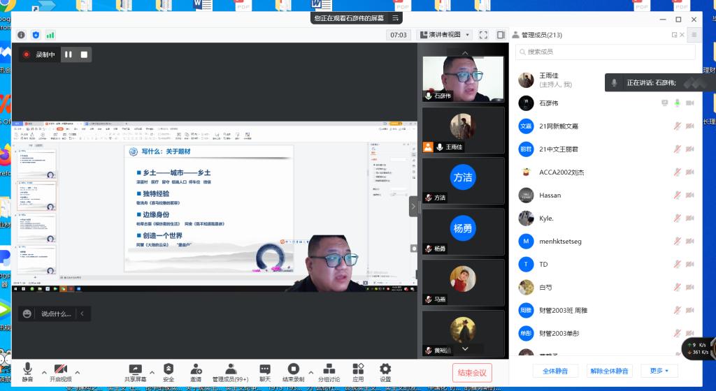 2021年10月29日晚19:00,青年作家石彦伟受邀为我院师生开展了以“散文创作理路与技法”为主题的线上讲座。本次讲座由文学与新闻传播学院王雨佳老师主持,此次会议得到了威廉体育师生及石彦伟老师的作家朋友的热烈响应,共有220人参与讲座。