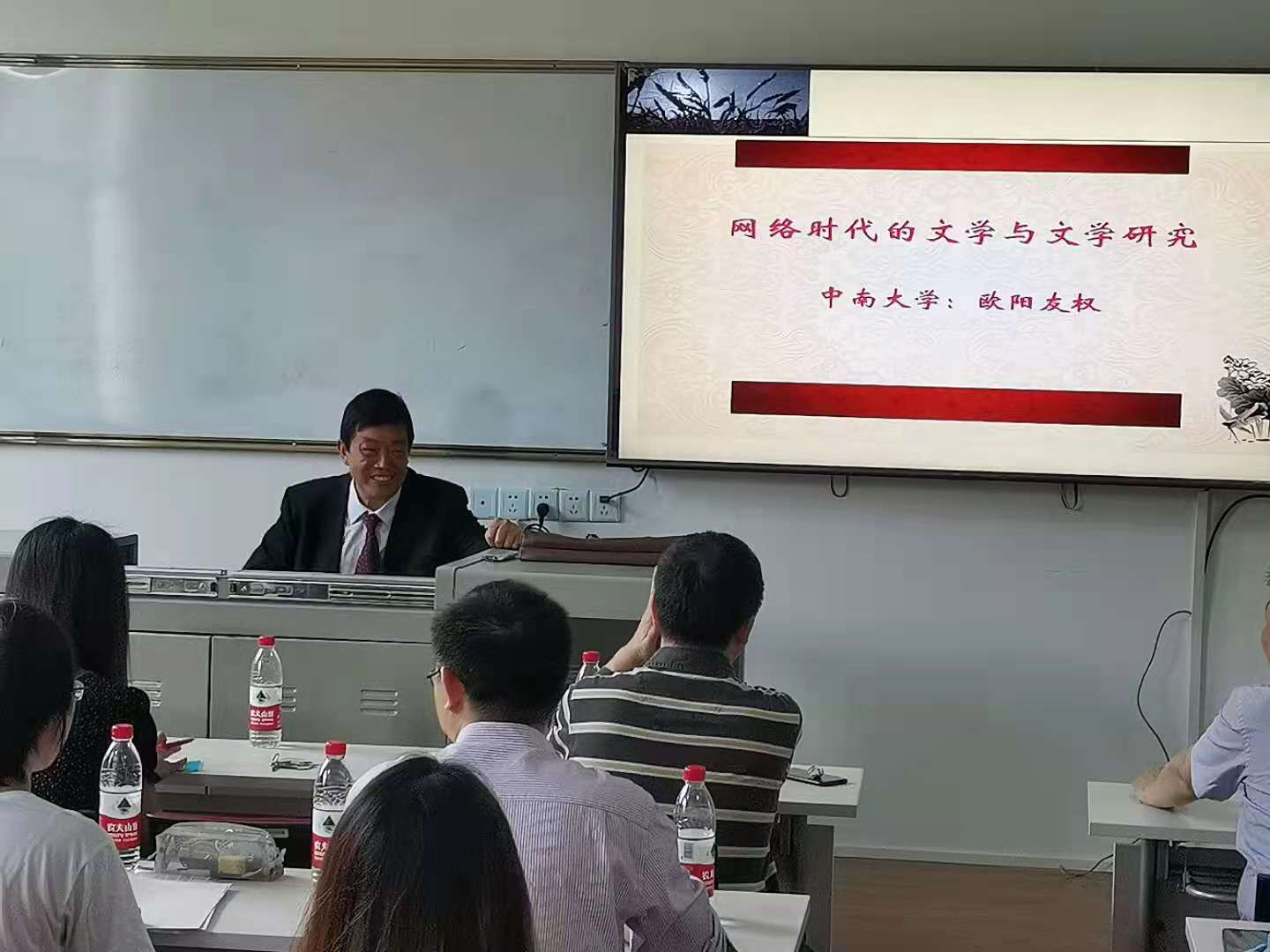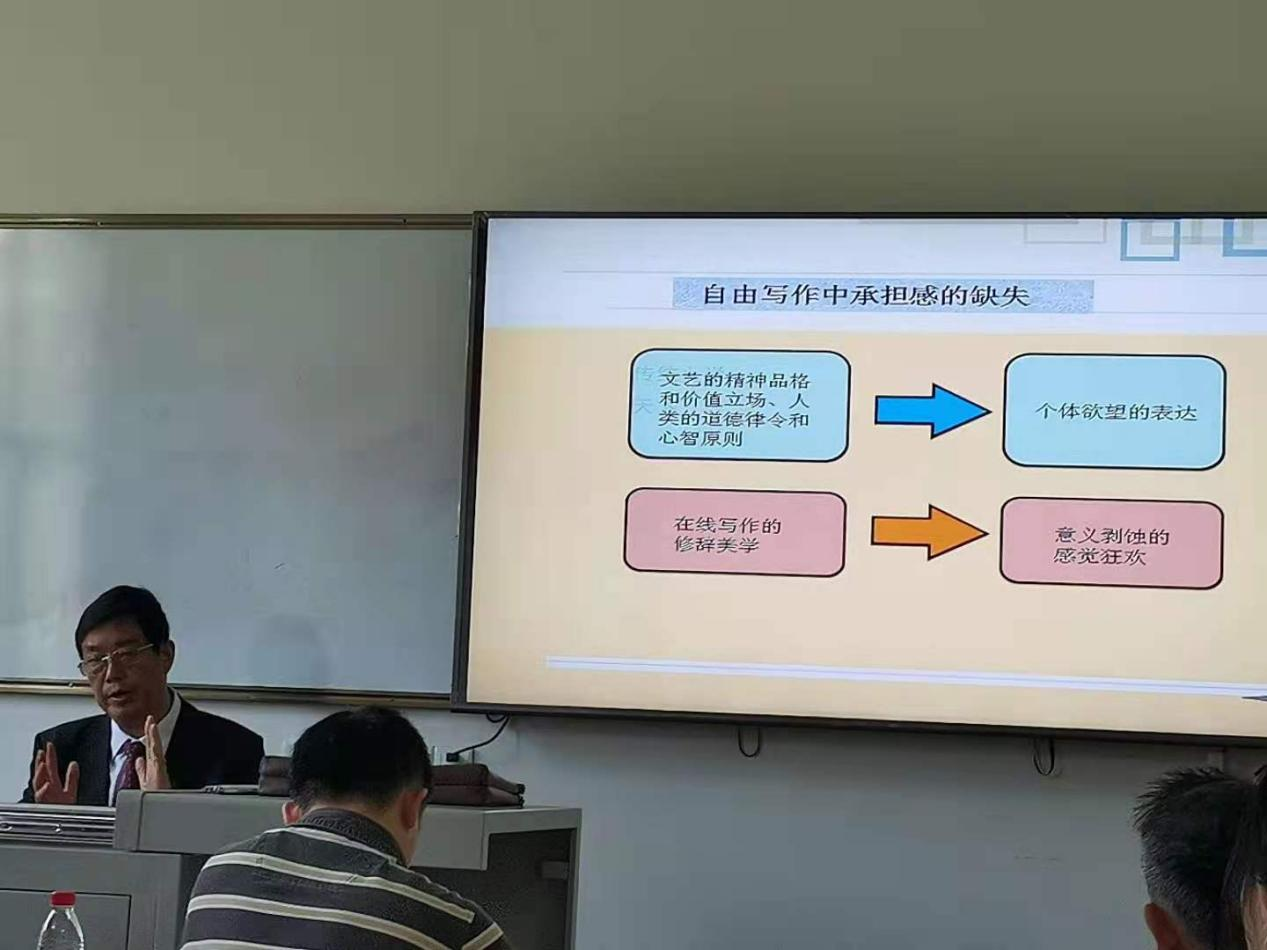 2021年5月8号早上9点于金盆岭校区7教303,中南大学欧阳友权教授莅临威廉体育,做了题为《网络时代的文学与文学研究》的学术讲座,讲座由易彬教授主持,文新学院副院长周云鹏教授、宁淑华教授、郑劭荣教授等老师与19、20级全体中文研究生参加了讲座。